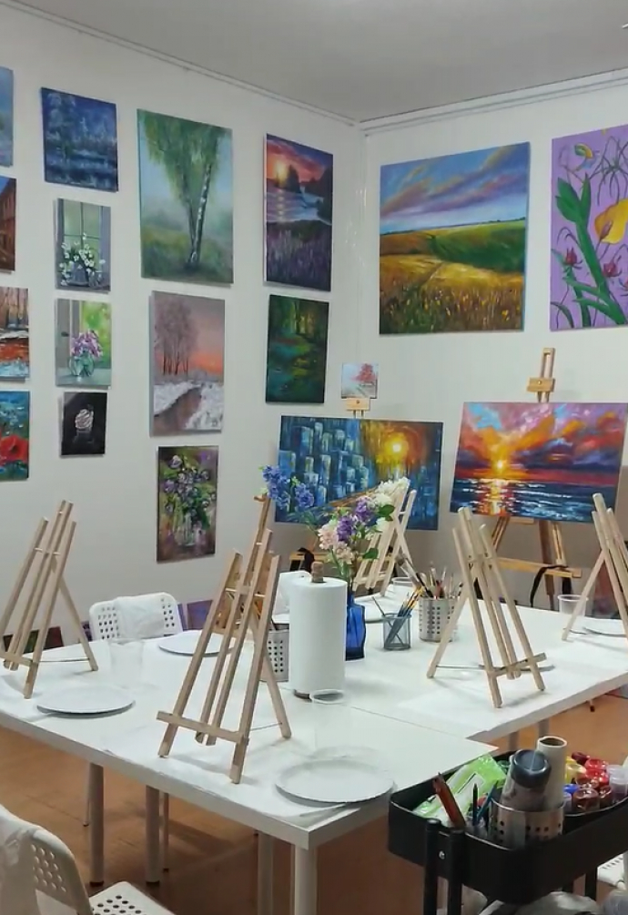 Чашка чая, хорошая компания, кисти, краски, холст — рецепт успеха.