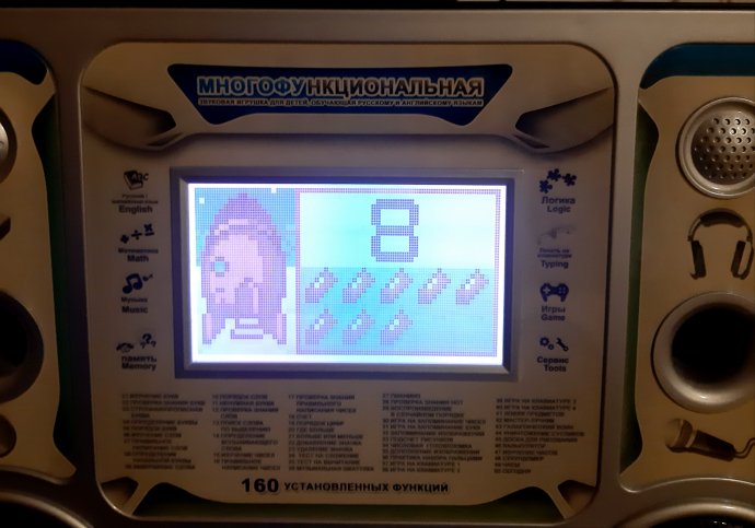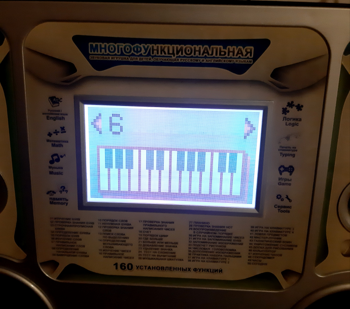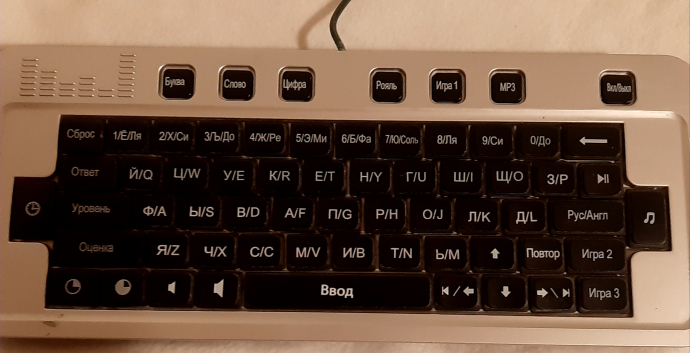 Можно взять в дорогу (работает от сети и на батарейках). Клавиатура на русском языке.