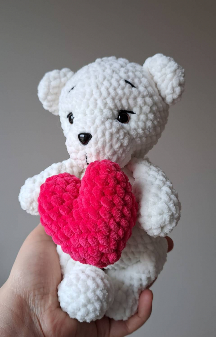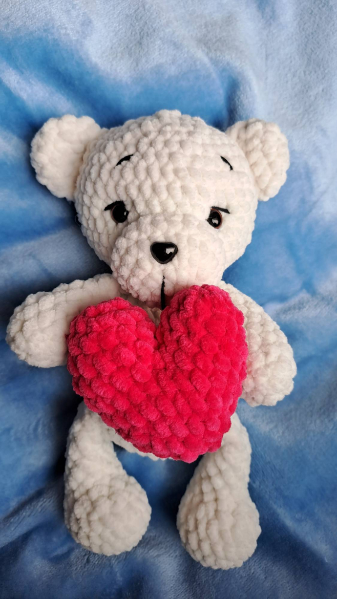 Продам игрушку ручной работы. Медведь белый с сердечком 22 cm Himalaya Dolphin baby. Глаза и нос на безопасном креплении.Цена — 250 Kč