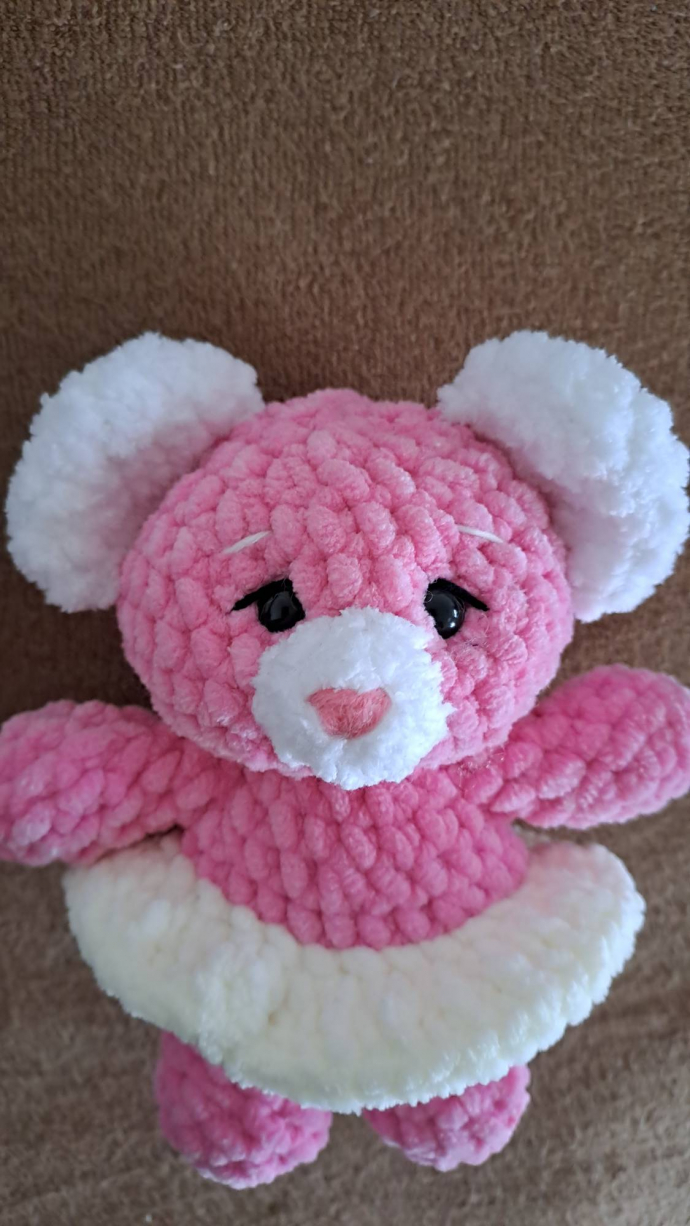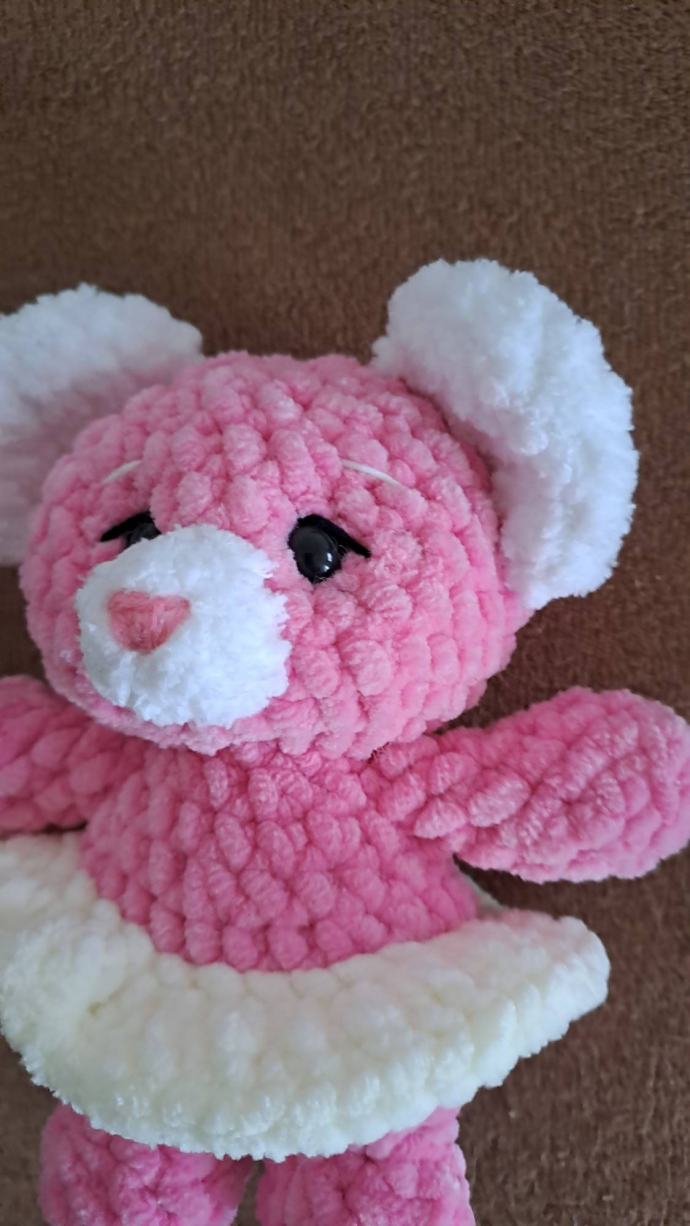 Мягкая игрушка, связанная крючком. Очень милая девочка ищет дом.Ручная работа из пряжи Dolphin Baby. Высота около 19 см. У плюша есть безопасные глазки. Цена 200 Kč.