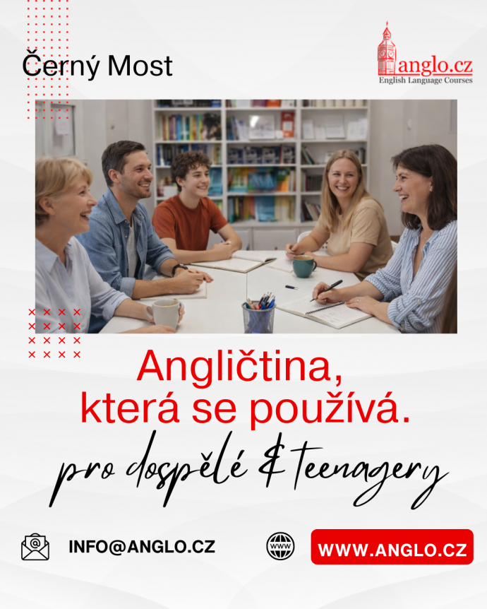 В новом семестре мы открываем групповые курсы английского для взрослых и для подростков на Чёрном Мосте/Černý Most — для тех, кто хочет понимать, говорить и чувствовать уверенность, а не просто «отходить курс».