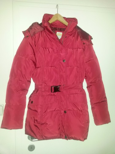 Девушки, продам отличный пуховик S’Oliver, состояние нового — надела 2 раза, все-таки мне большой, а так бы носила с удовольствием! Очень добротно, качественно сшит, теплый, капюшон отстегивается. Очень приятный цвет — фото неточно передает, он не чисто красный, а с таким розовым оттенком. Начальная цена 3700, купила по скидке за 2600, продам за 2000 крон.
