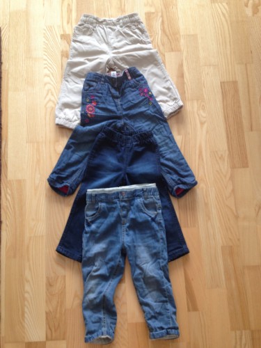 Джинсы утепленные на подкладке разм. 1, 5-2 года (М&S, Mothercare, H&M, C&A) цена 500 кр. за все, или по 150 кр. за штуку.