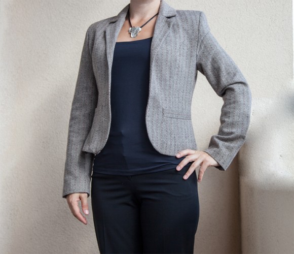 16 — пиджак Orsay, размер 36, ношеный. 60% полиакрил/40% шерсть. Нужно пришить 3 пуговицы. 150 крон;