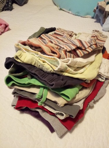 Отдам целую стопку штанов на возраст от6 месяцев до года-полтора, еще колготки и кофточки к некоторым штанам. За сто крон или кило бананов. До пятницы, потом отнесу в красный ящик.