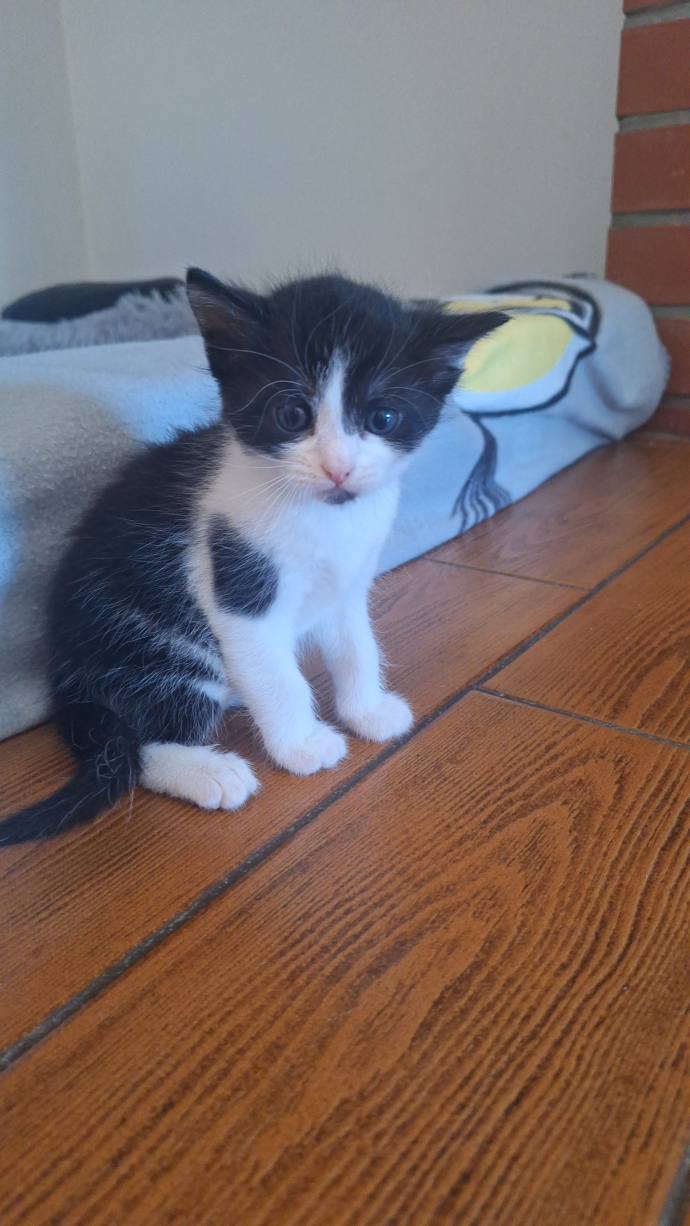 Отдам в добрые руки котят. Чернобелый-мальчик,и 2 девочки.Сами умеют кушать и ходить в туалет.Забирать в Презлетицах.