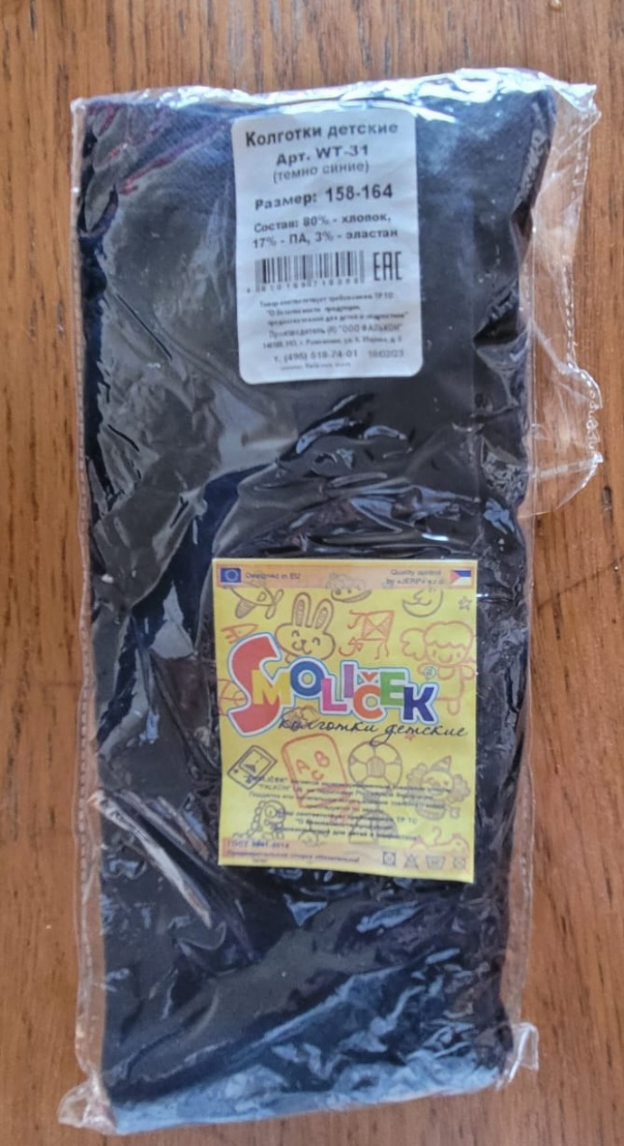 Совершенно новые колготки глубокого синего цвета, состав хлопок 80%, эластан 3%, ПА 17%.