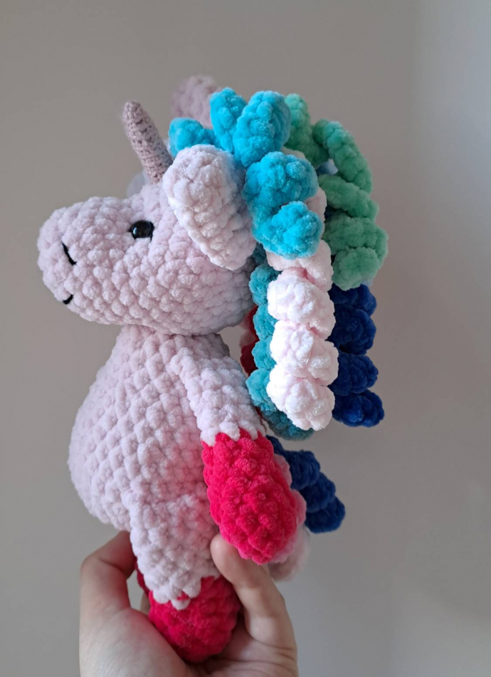 Милый единорог связан крючком. Связан вручную из мягкой пряжи Dolpfin Baby. Размер: 21 см. Пряжа гипоаллергенна, имеет сертификат TZÚ о безопасности для здоровья и подходит для использования в изделиях для детей до 3 лет. Цена 385 Kč.