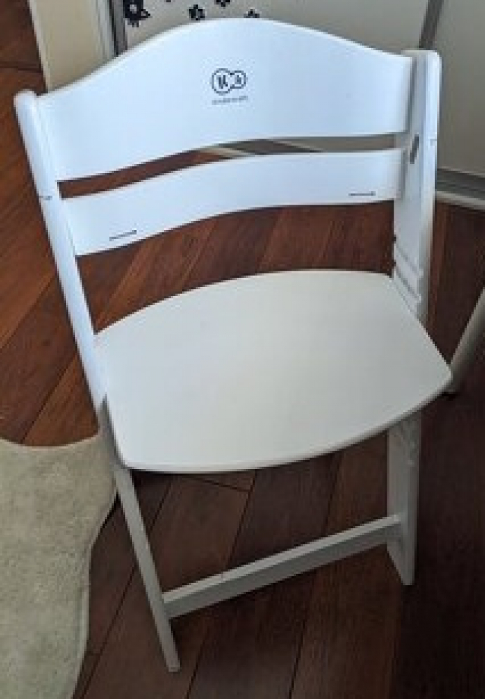 Деревянный растущий стульчик белого цвета от 6 месяцев и выше. Полный набор с подносиком для малыша.