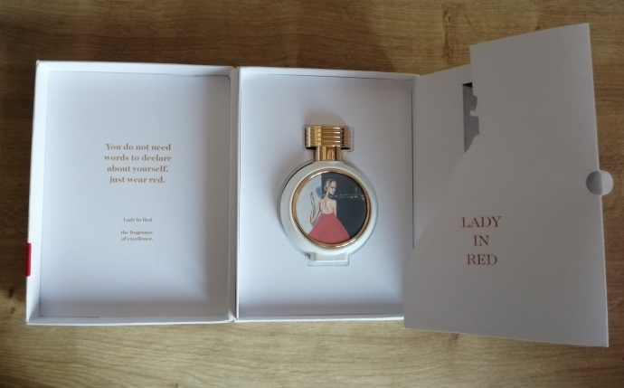 «Lady in Red Haute Fragrance Company HFC — это аромат для женщин, он принадлежит к группе восточные цветочные. Lady in Red выпущен в 2017 году. Парфюмер: Vincent Ricord. Верхние ноты: Розовая вода, Роза и Нероли; средние ноты: Ирис, Розовый перец и Кардамон; базовые ноты: Мускус, Гваяк и Серая амбра.»
