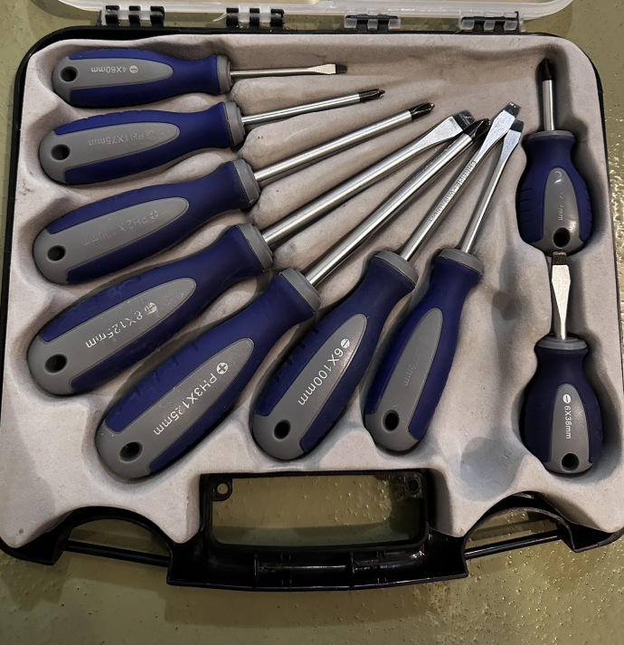 Отвертки (1 не хватает, нет зажимов, которые закрывают крышку) 150кс