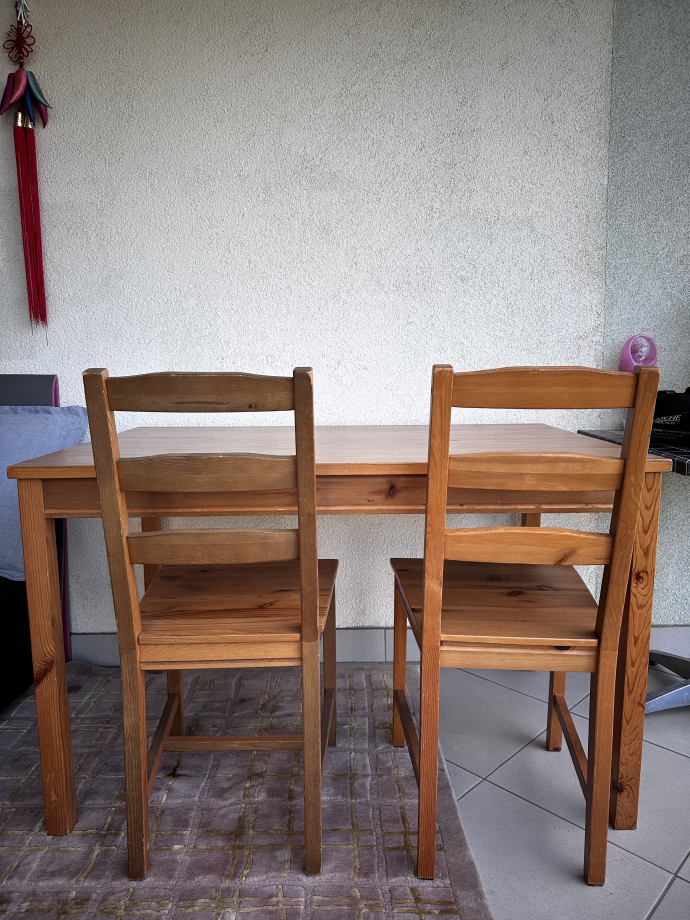 на столе есть царапины за всё 900кс. Есть еще второй такой же стол, без стульев 600кс.