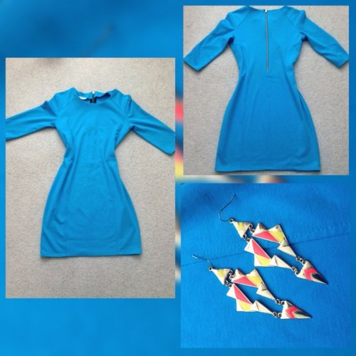 Голубое платье, очень красиво смотрится на теле, размер S пойдет и на М — 200 крон + безплатные сережки в подарок.