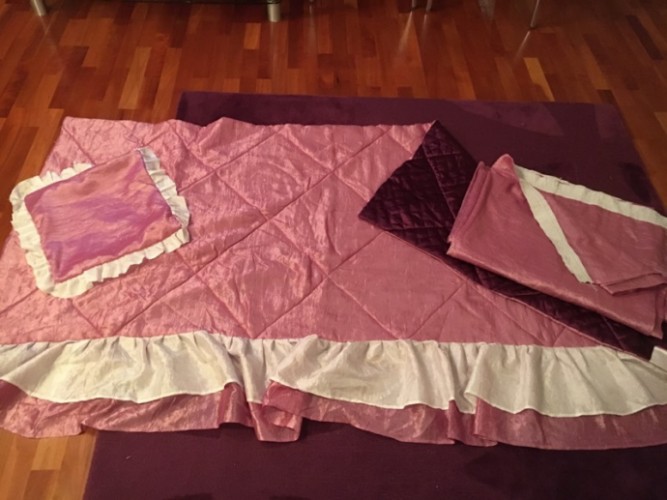 Два одинаковых покрывала на односпальную кровать, две наволочки и штора для девчачьей детской, — комплект из одинакового материала. Шился на заказ.
