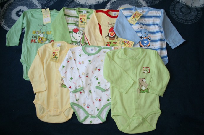 1.боди -цена 40 крон ,размеры 68, 74, 80, 86, 92, 98