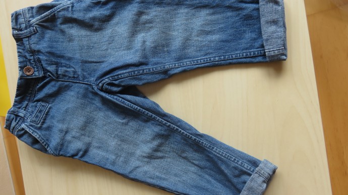 Джинсы H&M, р.1, 5-2, на рост 92, но могут прослужить и дольше — развернуть ткань по низу. Цена 70.