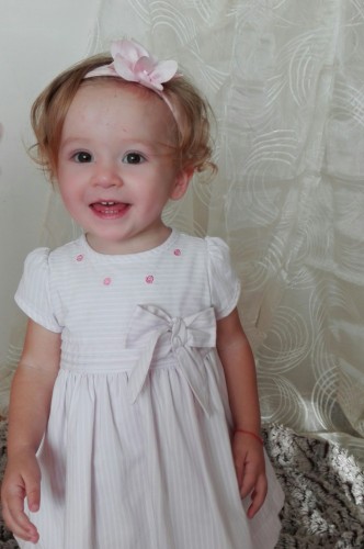 1. Платье с трусиками итальянской фирмы  Primigi . Размер написан 76, большемерит. На фото дочке 18 мес. Одето 2 раза (крестины и фото). Цена 200 крон.