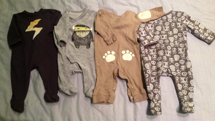 Размер -один 3М и три 6М. У черного и с черепами застежка сзади