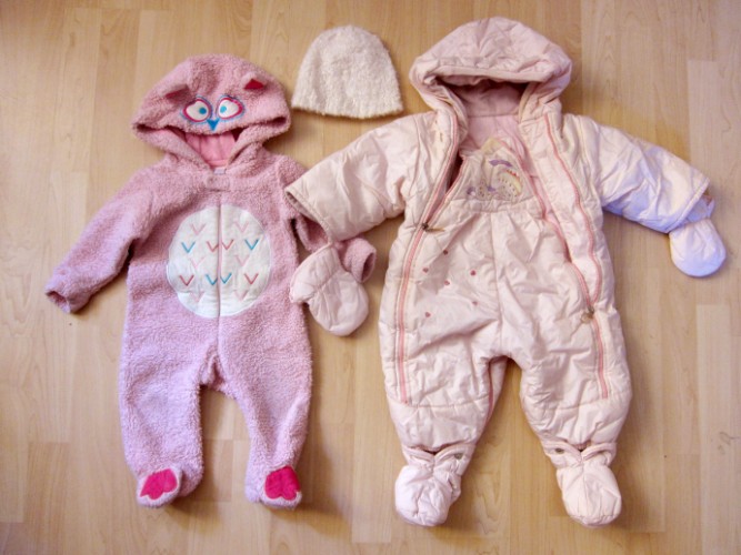 Один флисовый, другой утепленный, непромокаемый с валеночками (на кнопках) и рукавичками