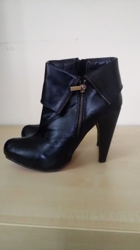 Продаю черные полусапожки из искусственной кожи. Размер 37, 5-38. Состояние нормальное. Обуты пару раз. Высота каблука 11 см.