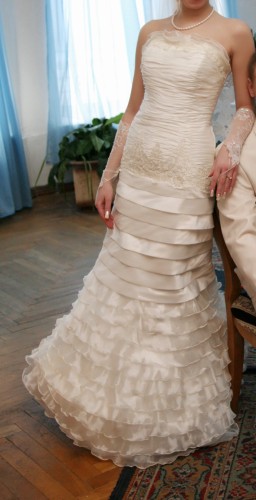 Продам свадебное платье. Цвет- брызги шампанского, фасон — рыбка. Размер S.