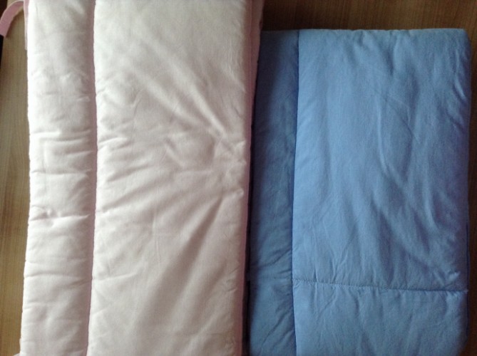 Продам бортики для детской кроватки: 1. Нежно розовый или синий — на весь периметр кроватки. 2. Белый с розовой тесьмой — на изголовье буквой «П» (низкий Икеевский бортик отдам просто так вместе с ним).