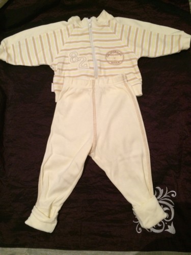 1) Продам костюмчик детский, новый, но постиранный. Бледно желтого цвета (подойдет как для девочки, так и для мальчика), размер 74, цена 150 крон.