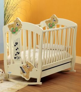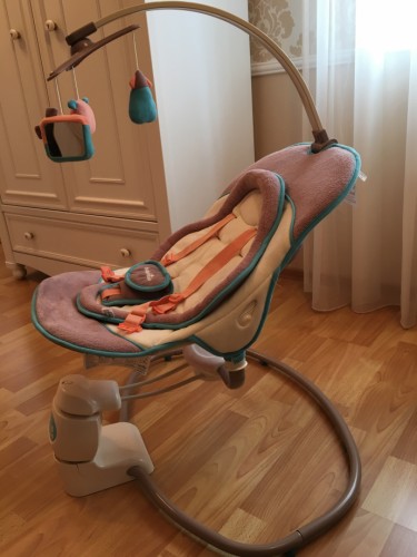 Имеет два положения: лежа, полусидя, несколько скоростей раскачивания, мелодии, регулятор громкости, подложку для новорожденного, которая легко снимается, работает как от сети, так и на батарейках. Цена 450 крон.