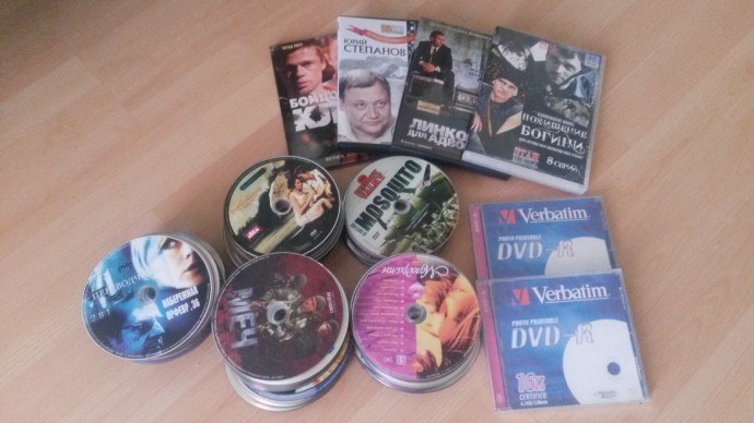 Куча дисков: мелодрамы, сериалы, боевики, игры, музыка.