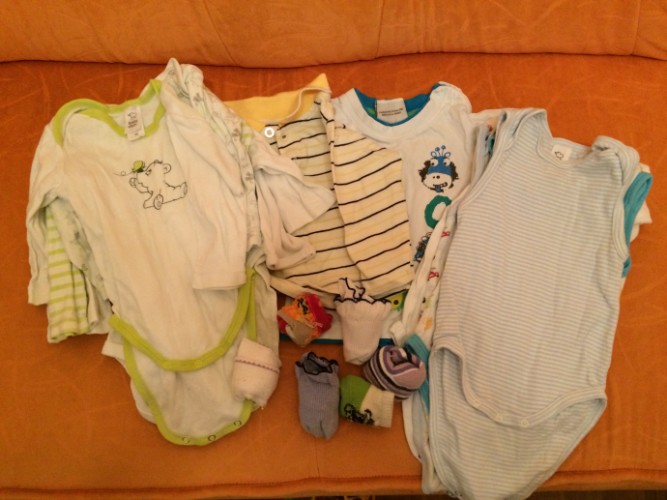 Отдам пакет детских вещей на мальчика (бодики в основном, мешок для сна тонкий). Вещи ношенные, состояние нормальное.