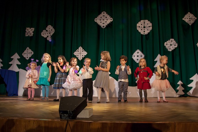 На фото наши маленькие артисты выступают на новогоднем концерте :)