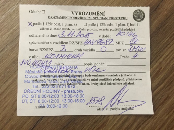 Девочки, мужу во дворе дома прикрепили на машину вот такое уведомление.. Т.к. чешский совсем никакой (4 месяца как переехали сюда), то переводили через Гугл переводчик — «Подозрение в правонарушении». Что это такое??? Нужно идти в полицию или ждать штраф по почте? За что вообще такое выписывают, ничего вроде не нарушили..